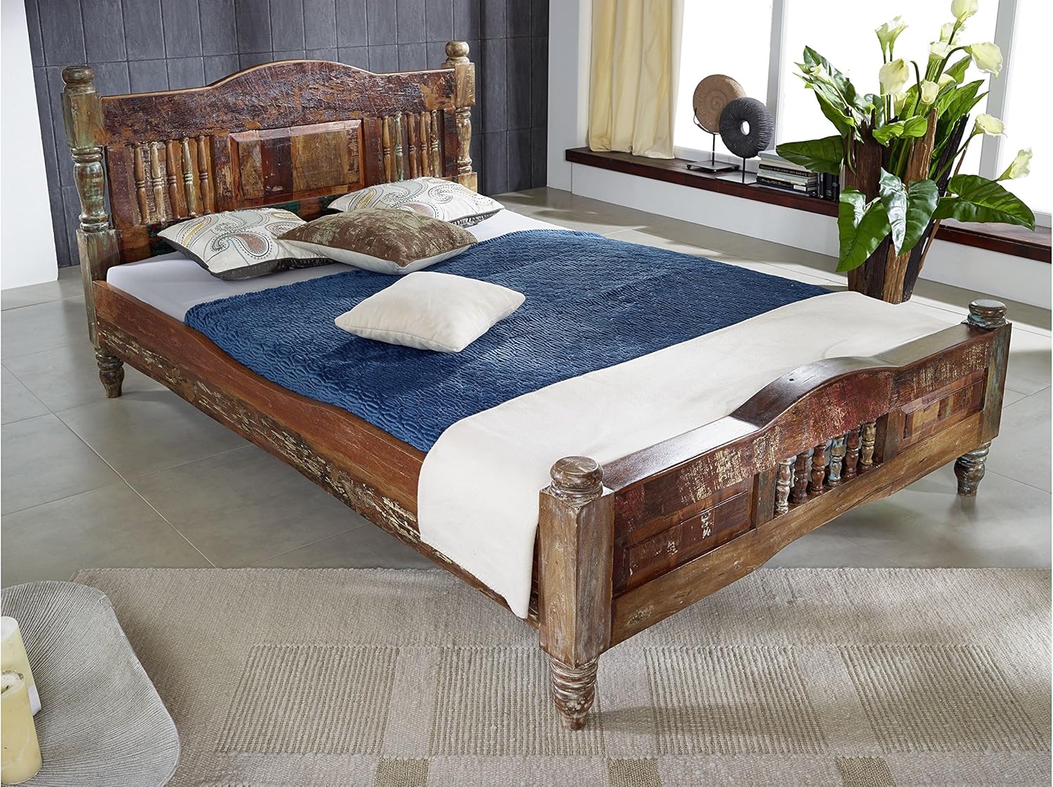 massivmoebel24 de massiv holz mobel vintage lackiert bett 120x200 altholz massiv mobel mehrfarbig massivholz fable 20 amazon de kuche haushalt wohnen