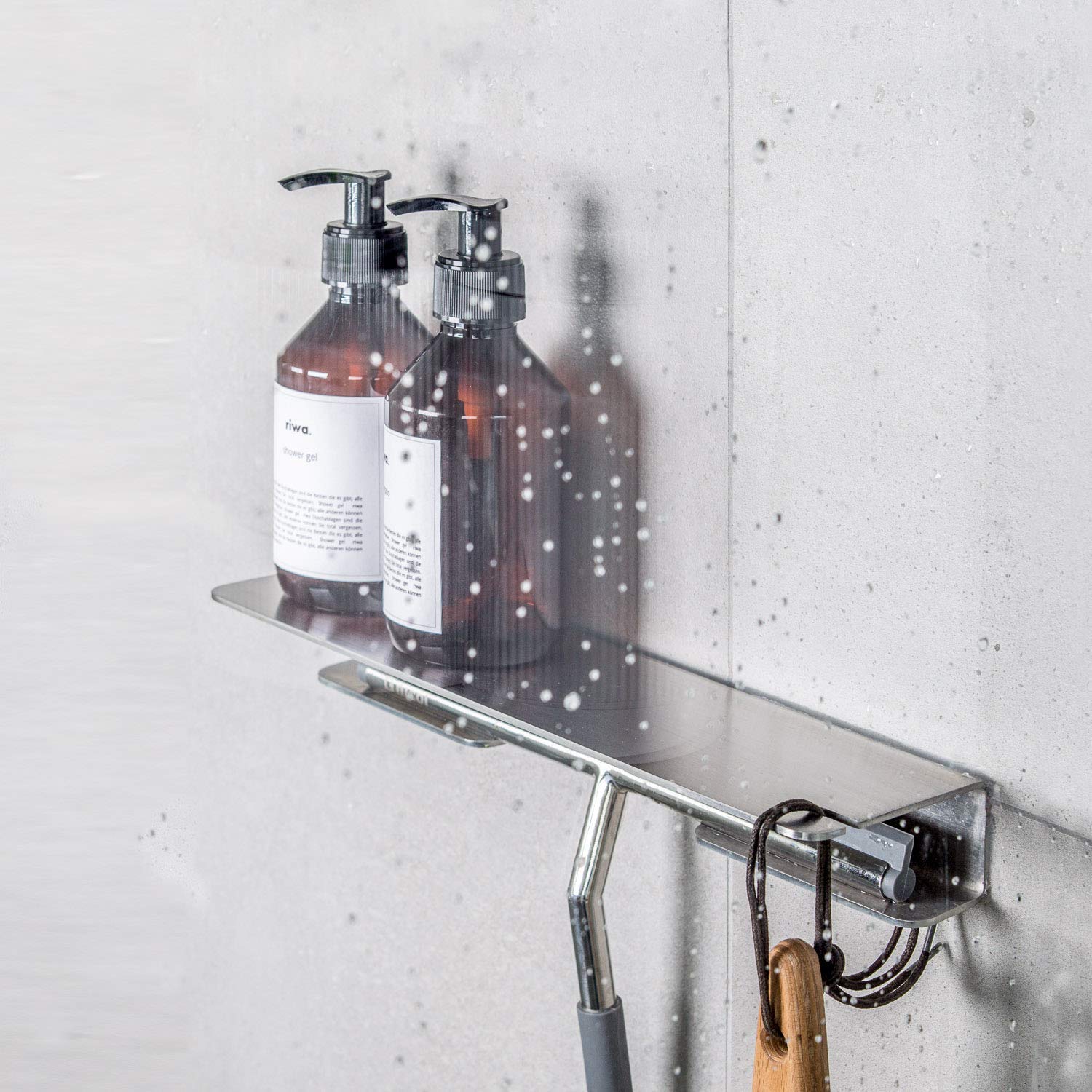 design made in germany rostfrei duschablage aus edelstahl matt geburstet fur dusche und bad mit integriertem halter fur einen duschabzieher handwerk handmade produkte asiscomcolombia kuche haushalt